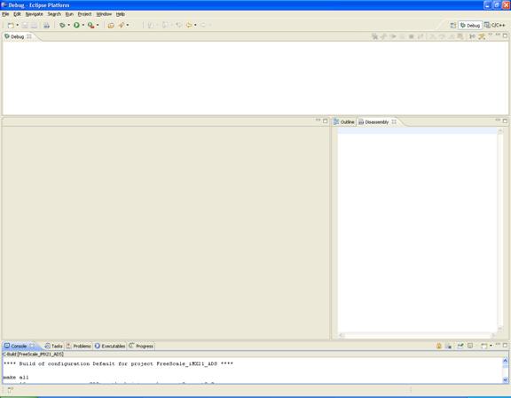 5) Set Project Name and Directory : In the C Project dialog that appears: enter you project’s name, (in this example: NewProject) uncheck the “use default location” checkbox and use the browse button to select the directory location you saved your source, makefile, … files in. Then click the FINISH button. If your makefile is correct, Eclipse should compile your files and show them in the Project Explorer window and the results of your build in the Console window. If the build fails, fix your makefile until it builds successfully before continuing on to step 6. (Highlighting your project name and then clicking the “Build All” (piece of paper with 010 in the right side of the tool bar) icon starts a build).