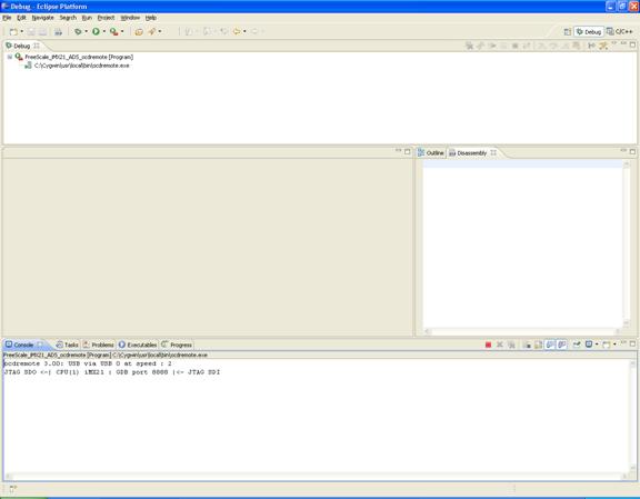 · With your target powered up and connected to your host via a Macraigor JTAG device, click the RUN button. This should start ocdremote and connect to your target. If so the console will display :