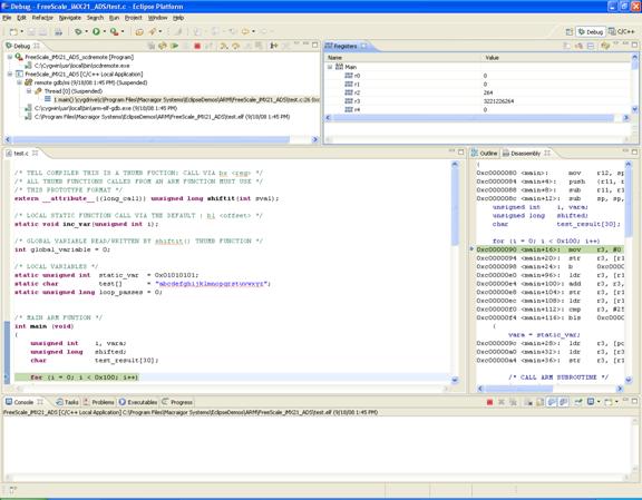 In addition to the tools and development environment, Macraigor also supplies pre-built Eclipse projects for many industry-standard evaluation boards. These projects provide a simple way to get the cross-development environment up and running on actual hardware. The user can then modify and expand these demos to work with other target hardware and more complex application development.