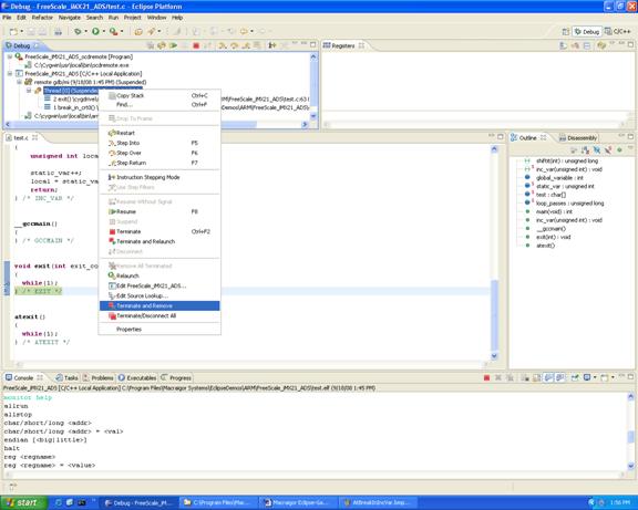 This means that your gdbinit file must look like the ones in our examples to work correctly with Eclipse Helios and DSDP. Verify that your gdbinit file contains the line: