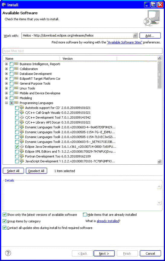 6) In the list that appears click Programming Languages and check the "Eclipse Java Development" checkbox