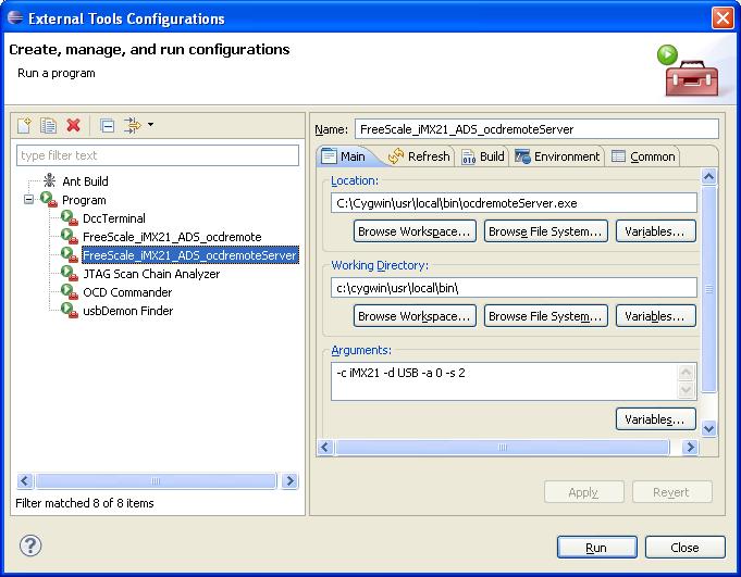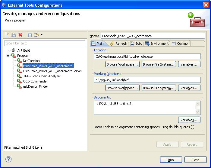 configuration parameters in Eclipse when you start OCDRemote. Refer back to